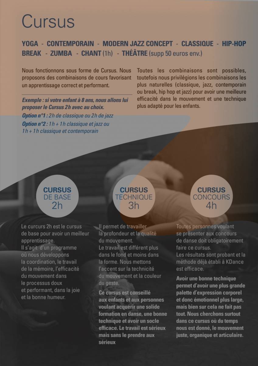 Attention, certains cours sont déjà complets, aussi bien en danse qu'en musique et chant, nous vous demandons de nous appeler dés juillet afin de réserver une place pour les cours d 'essai... en septembre il sera peut être trop tard