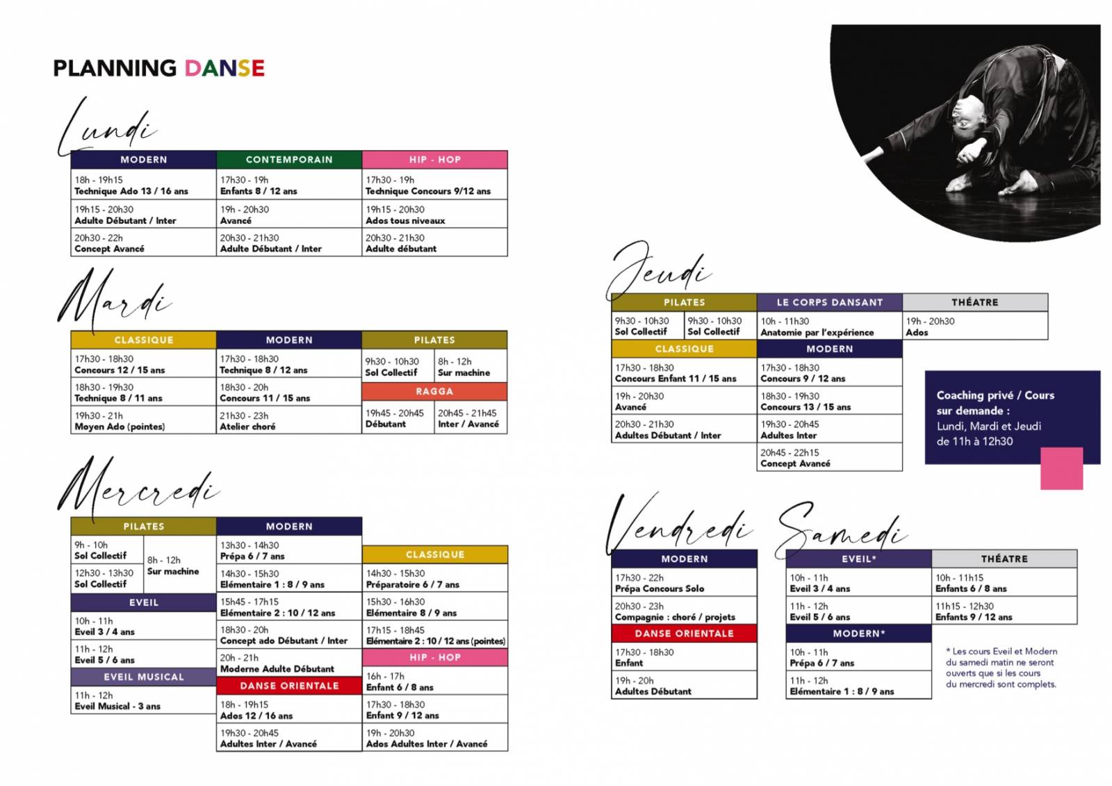 Heureux de partager notre savoir, notre vision et notre expérience nous vous offrons 1 semaine de cours illimités ... pendant les semaines du 11 septembre au 20 septembre, venez tester autant de cours que vous souhaitez.