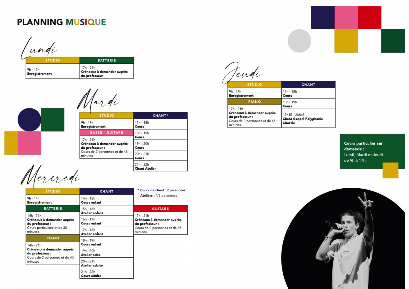 Attention, certains cours sont déjà complets, aussi bien en danse qu'en musique et chant, nous vous demandons de nous appeler dés juillet afin de réserver une place pour les cours d 'essai... en septembre il sera peut être trop tard